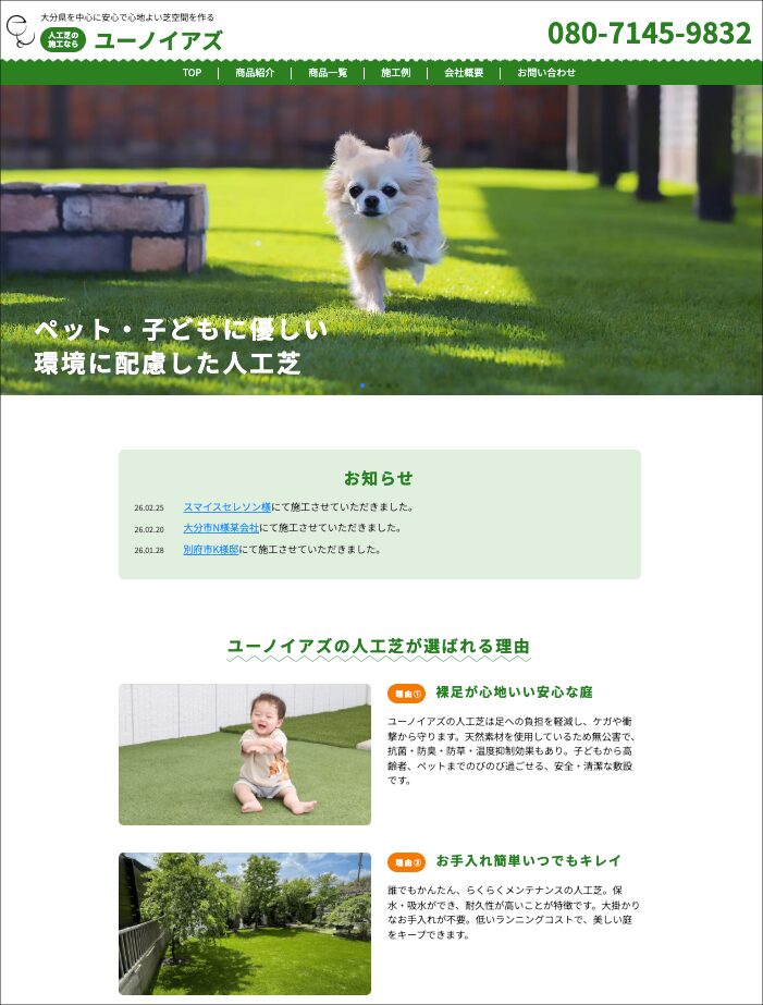 うちの事業は人工芝の事業からスタートしたんですが、はじめはホームページ制作だけをお願いしました。でも、せっかくwebサイトを作るならネット検索で上位に表示したいと思ったんです。